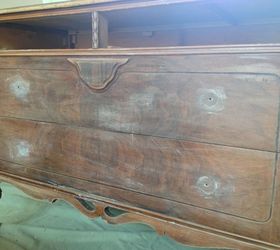 I found this dresser at an estate sale. The top was in really beat up shape, but the overall design of this dresser is just beautiful.I sanded and sanded and sanded the top, and then lightly sanded the rest of the dresser.