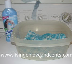 A while back I experimented with something when I ran out of dryer sheets. I did not have any coupons and I was NOT going to pay full price for dryer sheets. So out of this need came this idea.It is so easy to dip, dry and use over and over! This has saved me lots of money as I do NOT buy fabric softer sheets anymore!