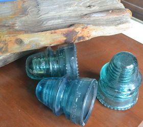 I've always loved the look of these old glass insulators from telephone poles, but I never could quite figure out how to use them in a practical way. Besides being a paperweight, which didn't really work considering I don't have an office (I don't think you'd call a classroom an "office", would you?) they just sat in a bucket, waiting for inspiration to strike.I finally figured it out.