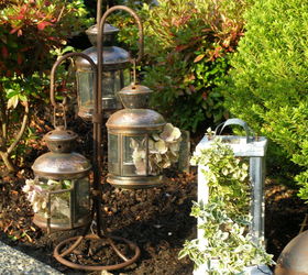 Our long summer of drought has caused our flora tto finish early. Although the weather is still very warm, plants are beginning to turn gold and brownTwo vintage style candle lanterns repurposed as garden planters/displays
